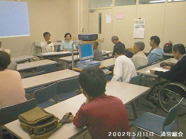 | 議 題: | 第1号議案 2001年度会計報告 第2号議案 2001年度会計監査報告 第3号議案 2001年度事業報告/2002年度事業企画 第4号議案 会則改訂 第5号議案 役員改選 |