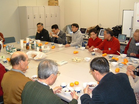 お汁粉やお餅が出来上がるまで、お久しぶりの方、はじめて参加された方など、パソコン仲間が楽しい交流を楽しみました。 |