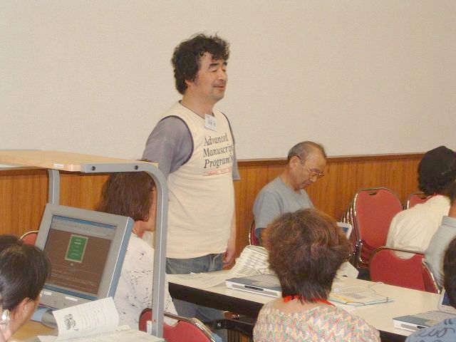 〔体験発表〕中途障害を持ったABS21の会員〔梁田さん、岡島さん、栗木さん〕より、パソコンとの関わり合いについて発表がありました。第3日:オリジナルカードの作成講師:佐久間 孝之参加者:受講生10名、看護師3名、サポータ10名、介護者など2名 合計:26名