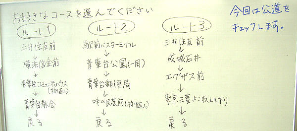 障害者といっしょにまちをあるき、まちの歩きやすさを検証したり、街並が障害のある人 にもやさしいかどうかを、三つのコースで調査しました。