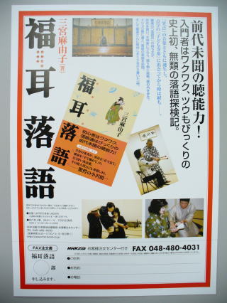 講演会の後、先生の新刊「福耳落語」をご案内させていただきました。 NHK出版より好評販売中です。 また、「福耳落語」は8月12日 ニッポン放送『塚越孝のおはよう有楽町』に三宮氏がご出演の際に紹介されました。 当日の放送内容の詳細はニッポン放送ホームページ「つかちゃんコラム」にて掲載されております。 |
